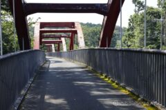 ちょうど半周し、多摩湖を縦断する橋との分岐は、赤い立派な陸橋が整備されており、巡航は中断しない。