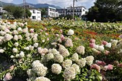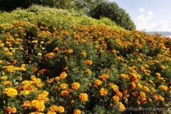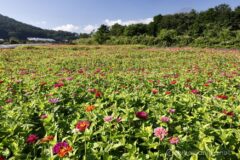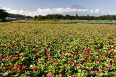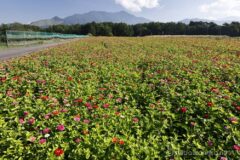 花の都公園の素晴らしいこところは、いくつもの花が同時に見頃を迎えるという奥の深さ。奥のお花畑に移ると、百日草が満開!ちょうど見頃だ。年によって微妙にお花畑の位置が異なり、毎年少しずつ違った写真が撮れるのもよい。