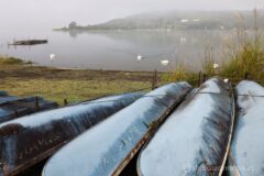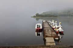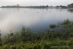 湖面の朝霧がだんだん晴れてきて、なんだか幻想的。霧から現れたのは、たくさんの白鳥さん。w