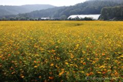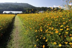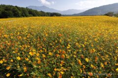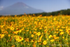 まずは富士山を背景に撮って。反対側を向いて杓子山を背景に撮って。南北に山を絡めて撮れるのも楽しい。今年も楽しませていただきました。名残惜しいけれど、満開のキバナコスモス畑を横目に、山中湖へ戻る。