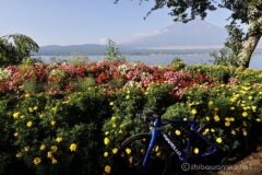 桜が咲く春の季節もいいけれど、いろんなお花が咲く夏の山中湖も素晴らしい。バイクや車でもいいけれど、自転車でゆっくり回ると、山中湖と富士山を味わい尽くせると思う。