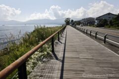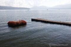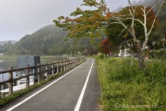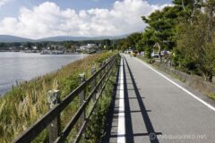 桟橋の湖に浮かぶお花畑を過ぎれば、しばらくは湖畔の国道138号線を一直線。春の時期であれば、桜が咲いているので、ちょくちょく止まってしまう区間だけれど、夏は桜がないので快速巡行。