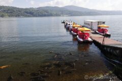 あまりゆっくりしていると、いつ富士山が雲に隠れるか分からない。先を急ぐと、湖にはでっかい人力白鳥さん(いまだに乗ったことがない)。