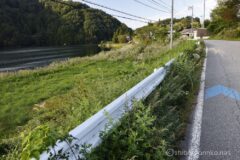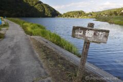 あとは東岸の県道324号線を北上して、スタート地点へ戻る。一見なんてことのない道なのだが、サイクリングルートで青い矢羽根マークあり。