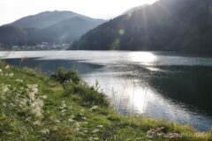 湖畔からは少し離れるが、湖畔にはススキが西日に輝き、秋の寂寥感を感じさせてくれる。夕方のサイクリングというのも、日があればよいかもしれない。日が当たった湖畔には、ススキと一緒にまだお花が残る。