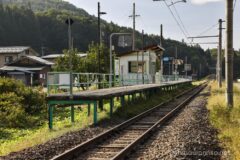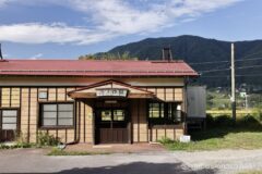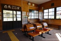 稲尾崎エリアの先は道がなくなるため、国道148号線に合流する。国道に合流する手前に、JR大糸線の稲尾駅がある。いい感じの駅舎で、旅情を感じる。
