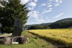 田んぼエリアを進むと、「豊穣稲尾の里」の碑があり。ここのエリアはまだ稲刈り前で、たわわに実った稲穂が見渡す限り続いている。まるで黄金の原。米不足で価格が高騰している中、こんなにたわわに実ってくれていて嬉しい。まさに豊穣の稲尾の里。