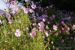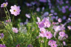 10分くらい待っていると、コスモス畑に日が回ってきた。秋を彩る貴重なお花、コスモス。この濃淡の薄紫色が何とも言えなく美しい。背景をボカしてみたり光が当たっていない場所との陰影をつけてみたり、入念に撮影。