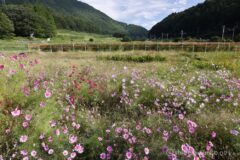 引き返して国道148号線と大糸線を横断して西岸へ進む。その途中にも、コスモス畑あり。花の少ない秋に咲くコスモスって、本当に貴重。里の風景を彩ってくれている。
