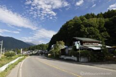 国道148号線に合流し、大糸線と並走する国道148号線を走ることになる。だんだんと路側帯が狭まり、少しだが路側帯がほぼない区間を走ることになる。国道148号線は交通量が多く、大型車も頻繁に通るため、素早く通り抜ける等、注意が必要。自転車ロードの青い矢羽根マークが付けられていても、走る道幅がなければ、結局車と同じところを走るしかない。