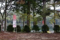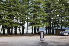 道路に面した入口から少し覗いたが、湖畔に松林?があり、すごく良い雰囲気のキャンプ場だった。