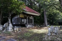 折り返し地点付近で、地図上に鳥居マークがあったので、寄り道して行って見ることに。電動アシストを効かせて急坂を登ると、海口庵というお堂があった。