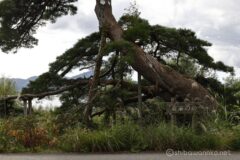 反時計回りに少し進むと、遊歩道の脇に支柱で支えられた巨大な松が現れる。デカすぎて写真に納まらない。w 「蓬莱の松」とあり名前のある一本松だった。