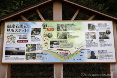 鳥居の反対側は、ご神木の大杉の向こう御座石神社。とても良い雰囲気。御座石周辺に見所スポットがあるらしく、見れる範囲で見てゆく。