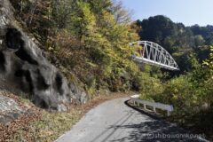 これから御岳湖一周サイクリングだから、早く御岳湖に戻らなくては。帰りも10kmの山道を急ぐ。途中山の谷間を渡すアーチ橋があり。アクセスする道も含めて、秘境感たっぷりの自然湖だった。