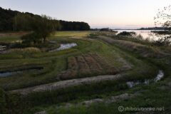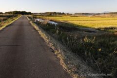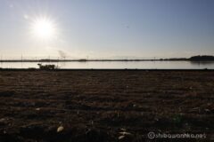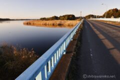 県道210号線の合流し、西谷田川を渡る。西谷田川を渡った後も中州とも半島とも見える陸地を県道210号線で北上する。本当は半島の先の方まで周遊したかったのだけれど、時間がないのですべて割愛。先のかっぱの小径から沈む夕日を撮るために、日没までにかっぱの小径に戻らなければならない。