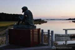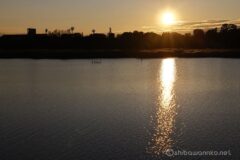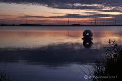 かっぱの小径から見る牛久沼は、残照に照らされて美しい。夕日もよかったかもしれないけど残照の方が綺麗かも。そして残照を映す水面にゴルフボールのようなものが2つ浮いている。ときおり風に揺られてゆっくりと回転しているよ。ここも理解が追い付かないが、なにかの芸術作品なんだろうな。何はともあれよい絵が撮れた、感謝感謝。