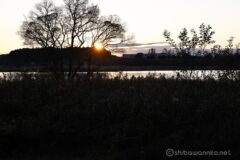 16:05 県道210号線を激走し、県道46号線(野田牛久線)に合流。今度は谷田川を渡る。ここでもうだめ、タイムアップ。かっぱの小径に戻る前に早々に日が沈んでしまった。この橋の上から夕景撮影をしよう。牛久沼の東岸の草木が夕日で赤く染まる。ここからの夕景撮影でもいいじゃないか。まずは夕日を撮れてよかった。