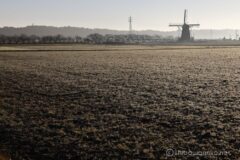 07:10 佐倉ふるさと広場へ到着。佐倉ふるさと広場はチューリップやコスモスなど四季折々の花で有名なスポットだが、当然今の時期にお花はない。本格的オランダ風車「リーフデ」とF5で記念撮影。