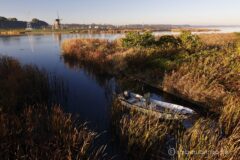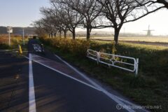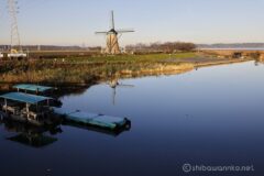西印旛沼にはサイクリングロードが整備されており、反時計回りで回っていく。かなり冷え込んだ寒い朝にもかかわらず、朝の散歩や自転車で走る人が結構いる。遠くに見えてきたのは、佐倉ふるさと広場のオランダ風車リーフデ。
