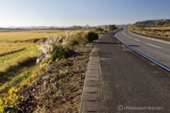 このままサイクリングロードで一周できるのかと思いきや、サイクリングロードは双子橋で終了。北岸はサイクリングロードはなく、一般車道を走ることになる。車道の周りは田んぼが広がり、グリーンシーズンが綺麗なんでしょう。