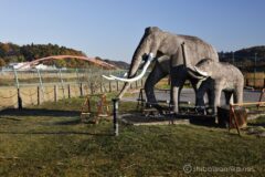 東岸を少し走れば双子公園。通り過ぎようかと思ったところ、見慣れぬものが視界に入る。公園の片隅に、なぜかナウマン象の親子がいる...。ナウマン象の化石発見場所としては長野県の野尻湖が有名でそのイメージが強かったけれど、ここ千葉県でも発見されたのかな?