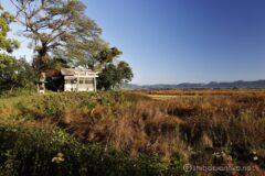 飯野竜神橋あたりからは、西印旛沼の向こうに佐倉ふるさと広場のオランダ風車が見えていい感じ。