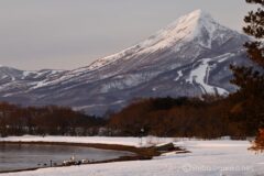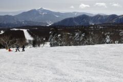 ここまでくれば、後はゆっくりゲレンデを流して帰るだけ。ゲレンデからは正面にくっきり磐梯山。あと1時間半くらい早く下山できていれば、夕焼けを撮りに磐梯山行けたんだけれど。かといって、夕焼けを撮るために西吾妻山の稜線で夕方まで粘ることもできない。今日は朝焼けも夕焼けも撮れなかったけれど、西大巓~西吾妻山の最高のスノモンが撮れて、これはこれでベストだったといえよう。