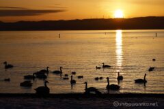 下山しても夕景を逃すのはもったいないので、猪苗代湖湖畔の志田浜から夕景撮影。夕暮れ時には若干空が霞んでしまってほのかに焼ける程度。磐梯山はまた次の機会に。吾妻連峰、安達太良山、磐梯山と楽しめる本当によいエリアだ。夕日の沈む猪苗代湖では、白鳥と水鳥の鳴き声だけが響いていた。
