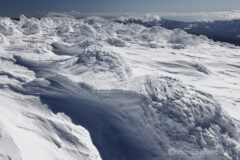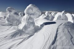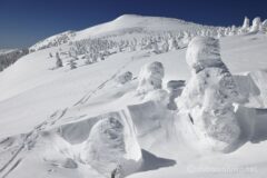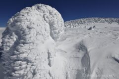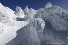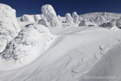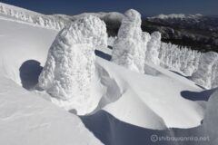 西大巓直下のスノモンも、大きく成長して見上げるほどの大きさ。西吾妻山のスノモンは”リトルモンスター”と呼ばれることもあるが、とんでもない大きさだ。100%雪に覆われて、黒い枝が飛び出ていないのが素晴らしい。