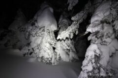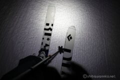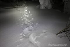 思わずフルラッセルとなったが今日の武器はスキーなので、それほど沈み込まず体力は削られない。これがスノーシューだったら結構大変だったのは間違いない。闇夜にヘッドライトで照らし出されたスノモンは立派に育っている。