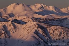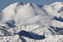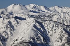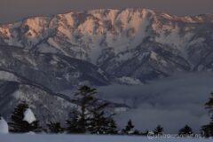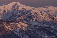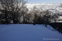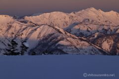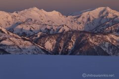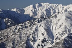 猿ヶ馬場山から狙えるのは、なにも白山と別山だけではない。その北側には笈ヶ岳と大笠山の白い峰々が続く。チャレンジしたことはあるが、なかなか冬期に登山口にも辿り着けない笈ヶ岳。最難関の二百名山の1つであることには間違いない。今回も届かず猿ケ馬場になった。今年こそ行けるだろうか。