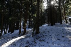 トレースに助けられながら順調に標高を稼いでいく。序盤から思っていた以上に結構急。ここでこれだけ急だったら、尾根道ではなく、谷筋を行き大シラビソ平へ登り上げるスキールートの急斜面はどんなんだろう?と心配になってくる。