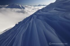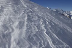 反対の五竜岳方面のシュカブラも彫りが深くて面白い造形。