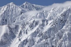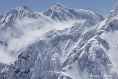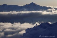 良い条件での八方尾根からの写真は以前撮っているが、今日は撮らないというわけにはならない。光線状態が良い今のうちに、超望遠レンズで撮れるものを撮っておく。
