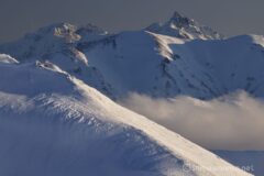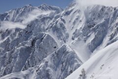 ここからも、五竜岳と鹿島槍ヶ岳の雪襞をアップで捉える。どういう条件でああいうふうに雪が着くんだろうね。五竜岳と鹿島槍ヶ岳の間にガスが流れていい感じ。