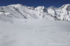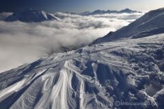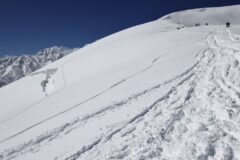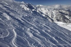 斜面の至る所にバックカントリーのシュプールが刻まれている。これは楽しいだろうな。景色も綺麗だし、なんてったって極上のパウダーだから。登山以外でこんな上質のパウダー、スキーで滑ったことがない。