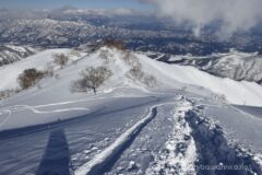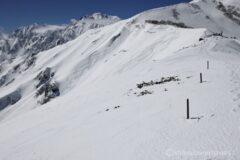 登山組はもうとっくにスタートしているので、絶好の登山日和だけど人はまばら。北側を見れば、既にシュプールが描かれた稜線の向こうに、白馬三山。二週間前にあの白馬岳の頂きに立ったことを思い出すと、ニヤニヤが止まらない。w