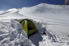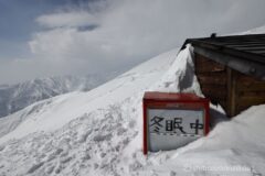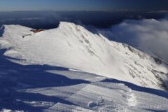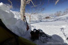 急いでテントをたたんで撤収。今回の雪ブロックは風のあたりも少なかったからか、ほとんど原型を保っていた。先々週の小蓮華山とは全然違う。