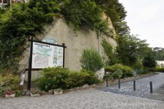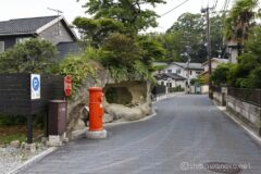 メインの松島海岸を回ったので、少し陸地側を散策してみる。味のある赤丸ポストと、住宅街に溶け込むような岩壁があったり。
