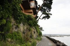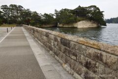 グルっと回ってくると、先ほどから気になっていたお城の通りに出る。何かと思ったら松島城ということらしいが、お城ではなく日本三景展望台だった。晴れていて開園していたら、絶対登っていたのに。今日みたいなはっきりしない天気ではね...、またいずれの機会に。