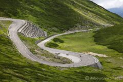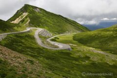 S字カーブの中から見てもなかなか良い景色。ここまで美しい道路ってなかなかない。残念ながら路面は結構痛んでいるので、ダウンヒルの場合はご注意を。
