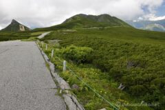 振り返れば畳平へと続く天空道が延びる。上空が雲で覆われてしまったのが少し残念。