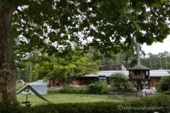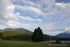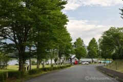 心地よい樹林帯のバードラインを、まずは大座法師池に向かって走る。大座法師池のほとりにはオシャレなnagano forest villageがある。ゲゲゲの鬼太郎の小屋見たいのがあるんですけど。これもコテージかな?w