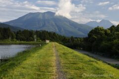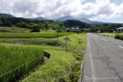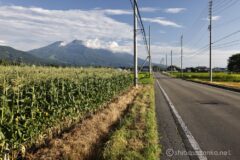 ひたすら真っすぐ延びる道を進む。快適な一本道で速く走れるかと思うがそうはいかない。前日の乗鞍~上高地一周ヒルクライムでお疲れなのか、脚に力が入らない。さすがに獲得標高2,800mは翌日に響く。黒姫山と妙高山の景色を楽しみながら、ゆっくり走る。両側の広大な農地は、田んぼ、ときどきトウモロコシ。