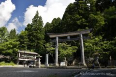 08:30 県道36号線に戻り少し走って、戸隠のもう一つのメインである戸隠神社にお立ち寄り。さすがパワースポット。大鳥居や社が厳かだ。観光客は少なくどことなくひっそりと静か。ご神木が大きい。樹齢800年とある。夏雲湧く戸隠神社を撮って後にする。