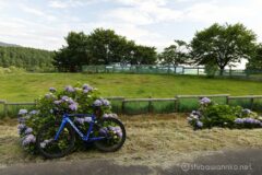 思わず一面に広がるアジサイと黒姫山のいい絵が撮れた。アジサイには日が回っていないが、黒姫山に架かる雲が朝日で照らされていていい感じ。素晴らしい景色に出会えるが旅の醍醐味。