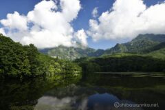 上空は雲が多く太陽光線を遮っている。雲は微妙に流れているので、ときおり雲の合間から日が差してくれる。ここまで来たからには、満足する写真を撮りたい。雲が移動するのを長~い時間まっていると、一瞬だけ部分的に晴れてくれた。その瞬間に数カット撮影して、鏡池での撮影は無事終了。今日は戸隠までサイクリングに来てよかった。