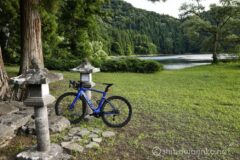 湖へ下りる踏み跡があったので、行ってみることにした。ちょっとした登山道のような道だ。ピナレロF5が、まるでグラベルバイクにでもなったかのよう。フルクラムSHARQのグラベルホイールと30cのチューブレスタイヤを履いているので、多少のデコボコも問題なし。