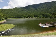 湖の奥まった部分を曲がると杉林となり、厳かな雰囲気に包まれる。ひんやりとした空気が心地よく気持ちがいいエリアだ。